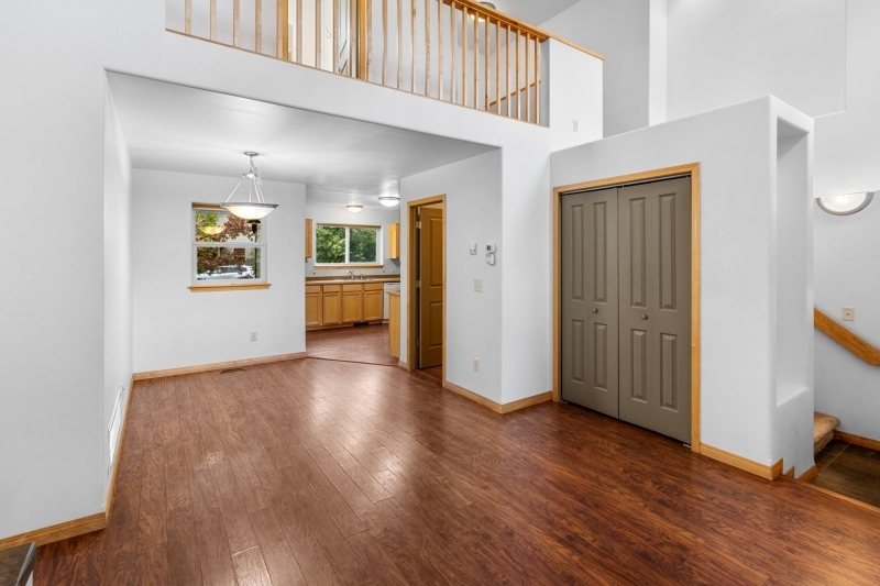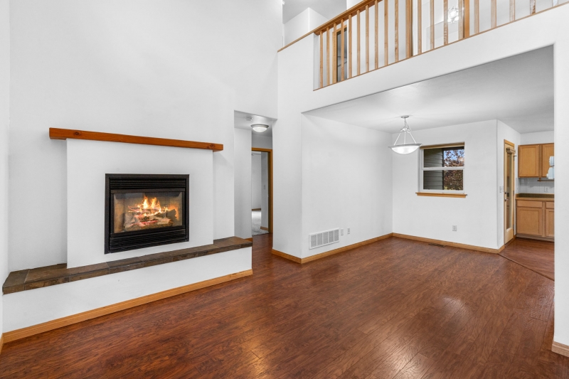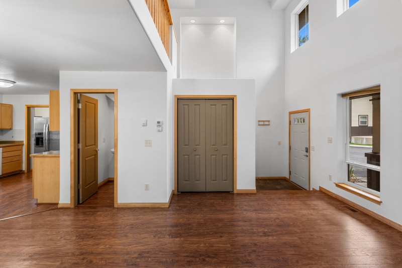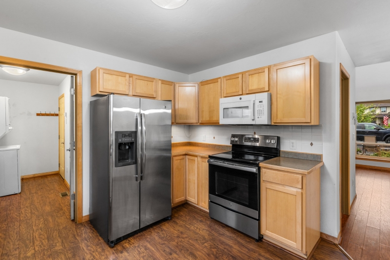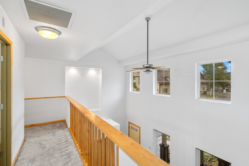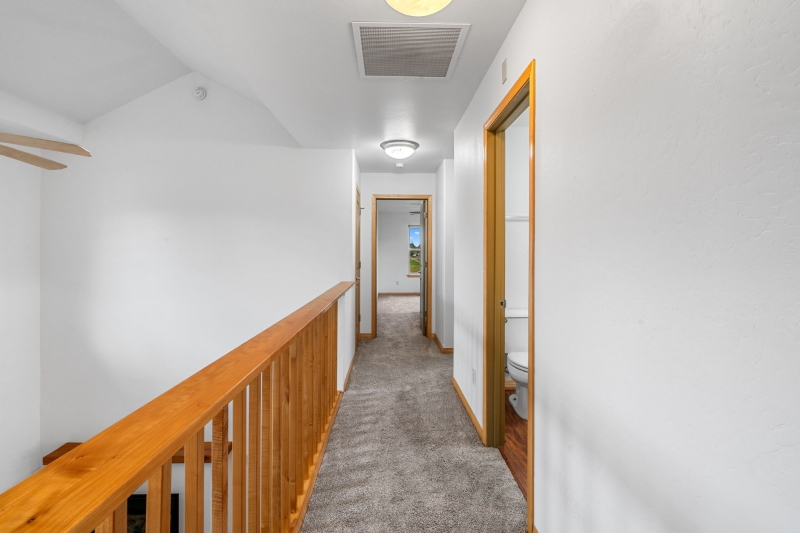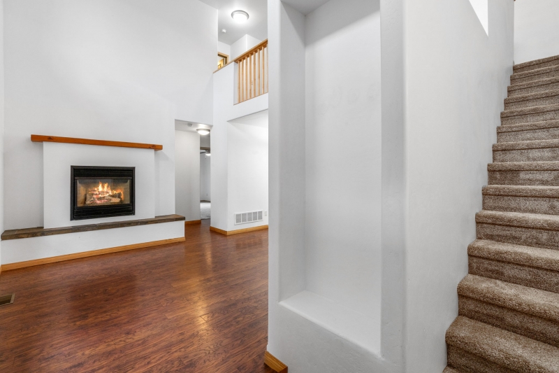 Beautiful 3 bed 2.5 bath Cattail Creek condo with main floor master suite, large 2 car garage, air conditioning, and vaulted ceilings backing to subdivision parks, trails and open space. The tiled main entry has space for coats and shoes as well as unique display opportunities for art, plants and decorations. Take 2 steps up to the open living /dining area with gas fireplace, kitchen and yard access. The mud room/ laundry room, half bath, and main floor master with private bath complete the main floor living space. Upstairs you will find 2 additional bedrooms and a full bath. The custom layouts and thoughtful design of the Trademark condos truly make them special. The attached 2 car garage and driveway allow room for storage and off street parking for vehicles, while on street parking to the north of the building is great for guests and additional access. Check it out today!