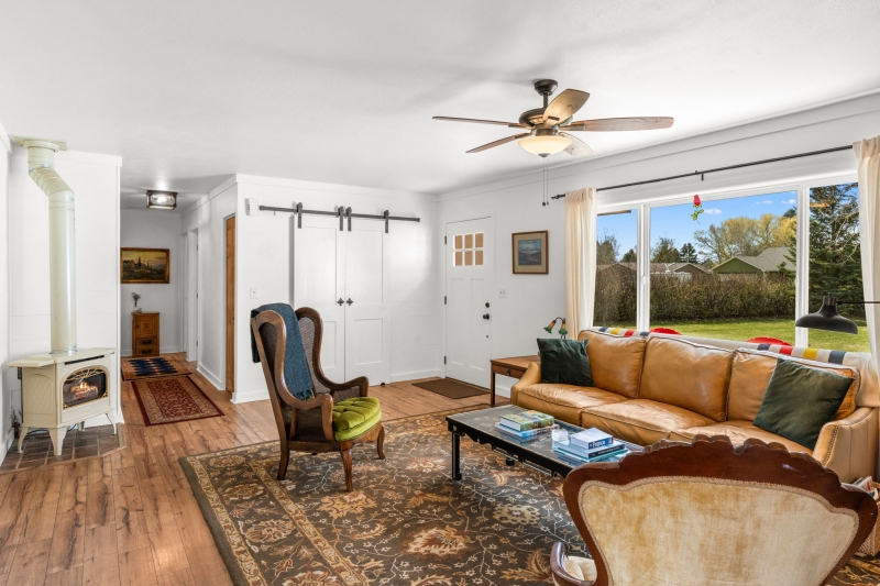 Beautiful Springhill area 3 bed 2 bath single level home on nearly 1/2 acre with large attached garage, workshop space, amazing Bridger Mountain views, updated kitchen, parking for toys and more! This modest neighborhood of half acre lots is tucked in with larger properties, farms, old homesteads, and multimillion dollar homes between north Bozeman and Belgrade. As you pull in to the property, take in the mountain views to the east and park under the canopy of mature trees that line the driveway. Take your time in the yard, walk onto your new front deck and look west to see the sunset and admire the privacy. Enter the home through the formal living room, a right turn will take you to the remodeled full bath, 2 guest rooms and the primary suite with attached remodeled 3/4 bath with tiled shower. Left at the entry will take you to the updated kitchen with pantry, stainless appliances, farm style sink and full tile backsplash. The large family room with gas fireplace and access to the back yard is just beyond the open kitchen/ dining area. Between the family room and garage are some features that make this home unique. Don't miss the giant storage/ gear closet across from the cozy private office space and the mud room with concrete floor and included washer and dryer. The attached garage is great for parking vehicles and toys along with an extra space that would be great for a gym, tools, tinkering or... The storage loft above the garage gives you easy access to seasonal items and things you don't need every day. The large back yard with included hot tub is partially fenced and ready for summer BBQ season. Additional parking and storage hidden to the north of the garage is great for trailers and back yard access. This wonderful home is located a few miles north of private Riverside Golf Club and public Bridger Creek Golf Course, easy access to the west side of the Bridger Mountains, and a short walk to the community park and playground. Currently residents in this neighborhood enjoy a Belgrade address with students enrolled in the Bozeman school district. Check out this wonderful home today! (buyers and their agents to confirm all information to their satisfaction).