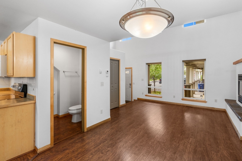 Beautiful 3 bed 2.5 bath Cattail Creek condo with main floor master suite, large 2 car garage, air conditioning, and vaulted ceilings backing to subdivision parks, trails and open space. The tiled main entry has space for coats and shoes as well as unique display opportunities for art, plants and decorations. Take 2 steps up to the open living /dining area with gas fireplace, kitchen and yard access. The mud room/ laundry room, half bath, and main floor master with private bath complete the main floor living space. Upstairs you will find 2 additional bedrooms and a full bath. The custom layouts and thoughtful design of the Trademark condos truly make them special. The attached 2 car garage and driveway allow room for storage and off street parking for vehicles, while on street parking to the north of the building is great for guests and additional access. Check it out today!